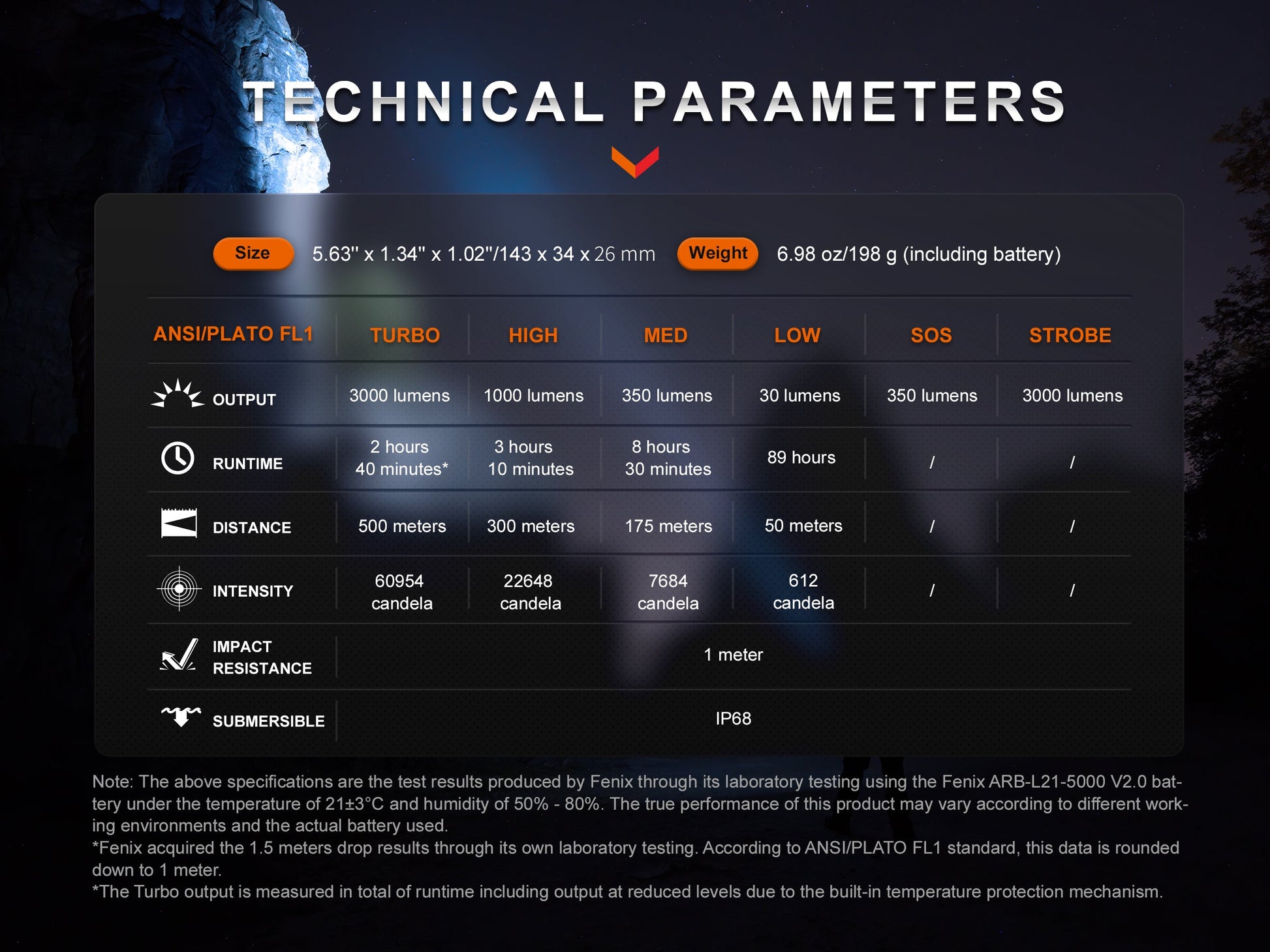 Revolutionize your lighting with the Fenix PD40R V3; boasting up to 3000 lumens, 500m beam distance, reliable IP68 rating, and 1.5m impact resistance. Its mechanical rotary switch and robust ARB-L21-5000v2 (21700) battery provide the ultimate control and power. Easily clip the pocket-sized body for portability, or use the tail stand for hands-free use. Experience illumination mastery at its peak - the Fenix PD40R V3 redefines clarity and performance.